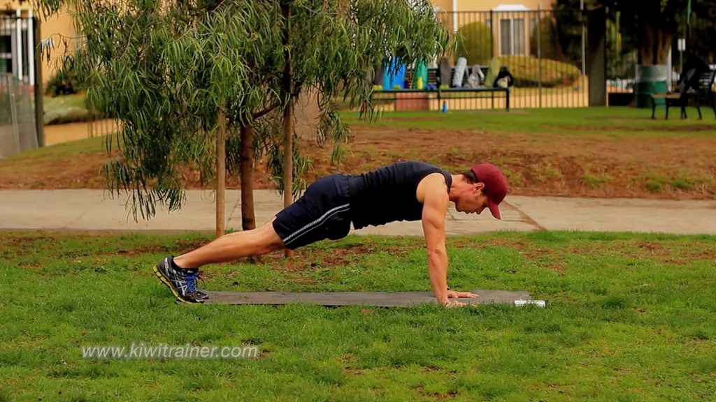 Set yourself up in a position as if you are about to do a push-up. Abs nice and tight, butt not too high and hands directly below shoulders.