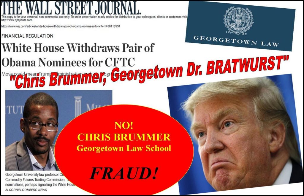 It’s next to impossible these days to find consensus among political foes in DC. Somehow the former FBI Director Comey and president Trump have found common ground in Georgetown Law Center “professor” Chris Brummer. Their likely conclusion: Brummer is a fraud, a liar and a phony.