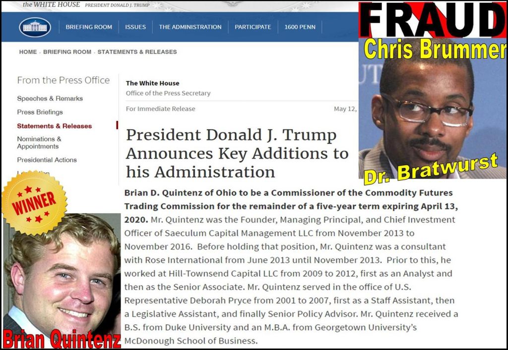 While Brummer may enjoy spitting out nonsense in a classroom, sending students to sleep, commodity market expert Brian Quentenz was recently re-nominated by President Trump as a CFTC commissioner.