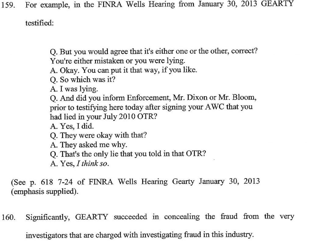 FINRA’s “Credible” Star Witness Maureen Gearty Admitted to Lying multiple times.