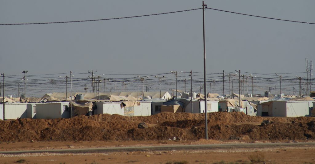 Escape from the camp occurs daily and new refugees arrive as well. The word “escape” is almost misleading. This isn’t a case of “Hogan’s Heroes” escape attempts. There’s no wall surrounding this camp; fences are used to separate the refugees from food and registration buildings and there are also fences at the main entry gates. Refugees are allowed to exit but are supposed to return. The gigantic camp is mostly surrounded by open desert, but there is also the nearby small preexisting Jordanian village of Za’atari.