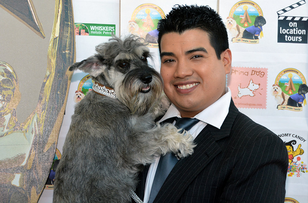 There were many proud pet parents attending the glitzy affair. Here is Miguel Rodriguez, a groomer at the Venus & Dalia Pet Spa, holding his sexy Schnauzer, Venus.