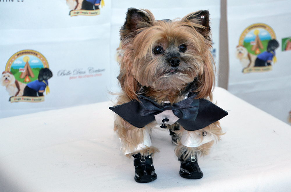Thankfully, us New Yorkers got a break from the frigid temps and enjoyed an almost spring-like (40 degrees) Sunday. It was a happy crowd that gathered at the PupScout 1st annual Pre-Oscar Red Carpet Pawty and Fashion Show held at Wyndham Garden in Chinatown. The lovely and talented Ada Nieves was the guest designer.