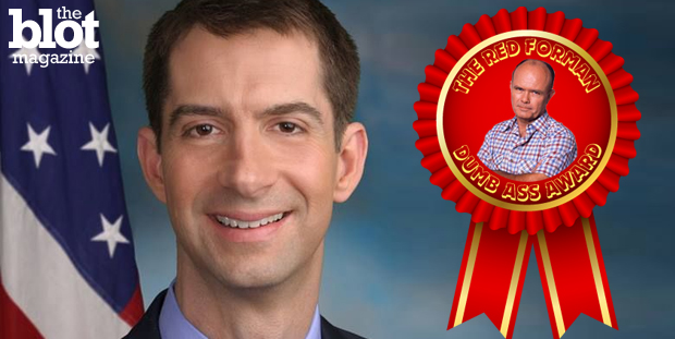 Yet Tom Cotton wouldn’t win TheBlot Magazine’s Red Forman Dumbass Award for that. People send letters all the time that they shouldn’t have even written. No, friends, what has pushed the good senator over the finish line for the Dumbass Award is his inability to learn from his mistake. “Face the Nation” host Bob Schieffer interviewed the young senator and discovered that Cotton has “no regrets at all.” Ladies and gentlemen, we have a winner!