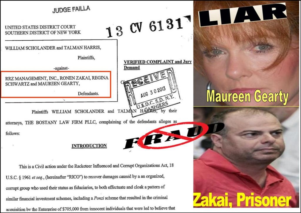 Talman Harris and William Scholander sued Maureen Gearty and Ronen Zakai in federal court, charging the love birds with RICO claims.